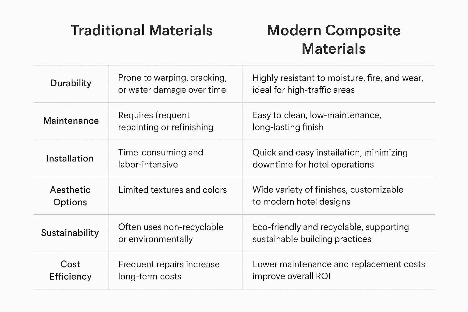 Hotels kiezen steeds vaker voor innovatieve interieurmaterialen die stijl, duurzaamheid en duurzaamheid combineren. Vergeleken met traditioneel hout en steen bieden moderne composietpanelen, SPC-vloeren en koolstofkristalverwarmingsplaten meerdere voordelen voor commerciële ruimtes.
