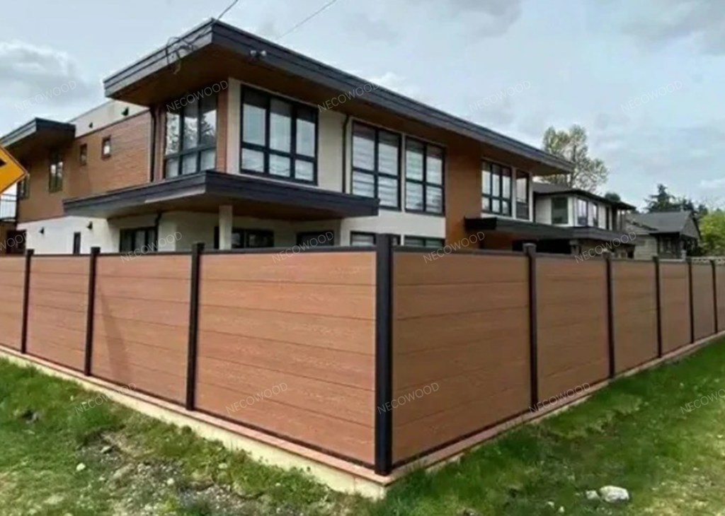 NECOWOOD benadrukt ontwerpflexibiliteit als een belangrijk kenmerk van zijn WPC-afrasteringsoplossingen. De planken repliceren de natuurlijke houtnerf en ondersteunen tegelijkertijd aangepaste kleuren, profielen en modulaire configuraties, waardoor compatibiliteit met moderne, minimalistische en traditionele bouwstijlen mogelijk is. De installatie wordt vereenvoudigd door standaard snij-, boor- en bevestigingsmethoden, waardoor de arbeidstijd en onderhoudskosten op de lange termijn worden verminderd.