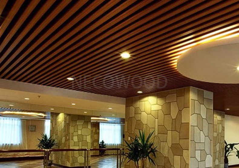 Gemaakt van hout-kunststofcomposiet (WPC) – een mix van natuurlijke houtvezels en hoogwaardige polymeren – vangen Necowood-plafondpanelen de warmte en schoonheid van echt hout op, terwijl problemen zoals kromtrekken, scheuren of veelvuldig onderhoud worden geëlimineerd.